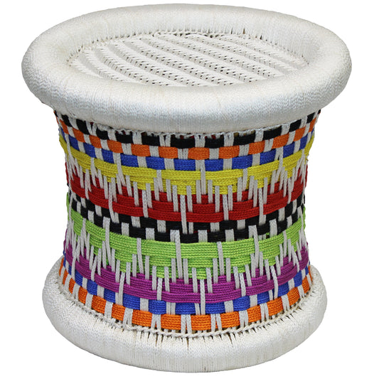 Natural Geo Decorative Handwoven Multicolored Accent Stool