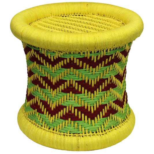 Natural Geo Decorative Handwoven Yellow/Green/Maroon Accent Stool