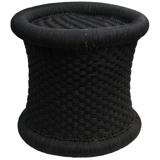 Natural Geo Moray Handwoven Nylon Decorative Accent Stool - Black