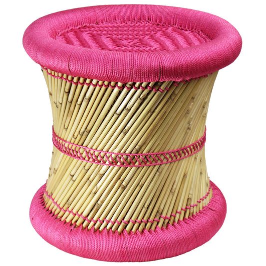 Natural Geo Moray Handwoven Nylon Decorative Accent Stool - Pink