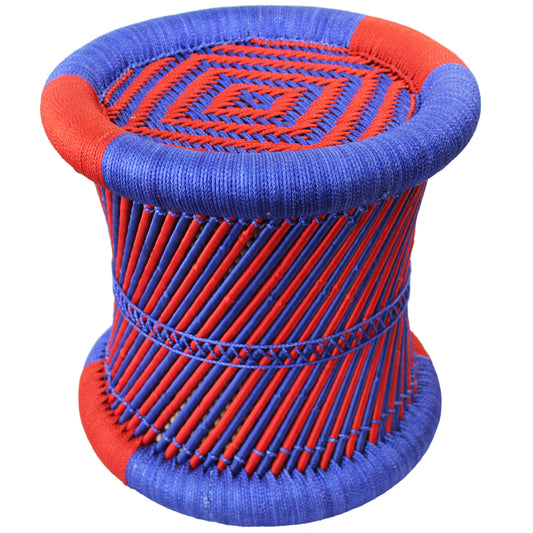 Natural Geo Handwoven Red/Blue Moray Accent Stool