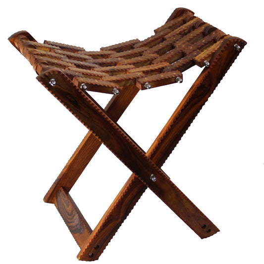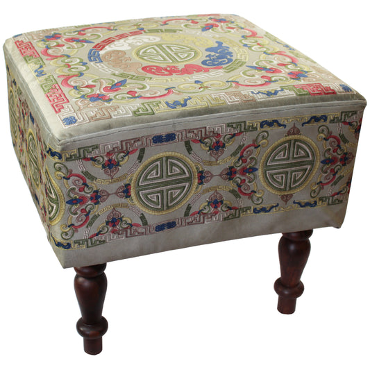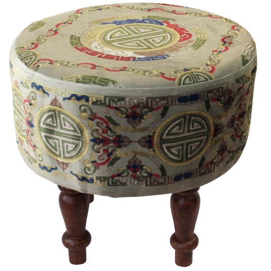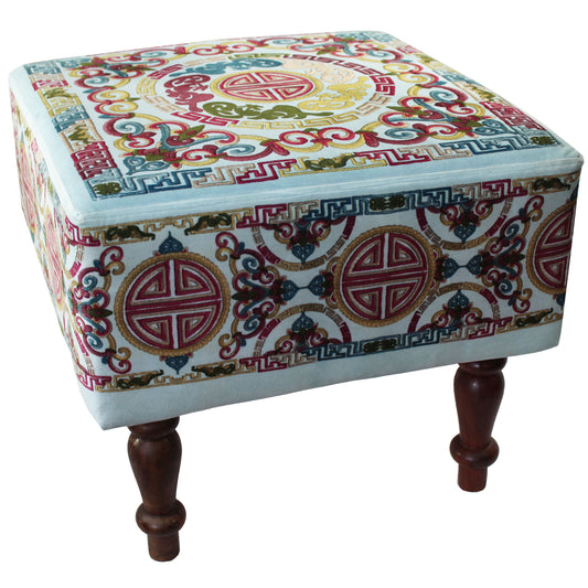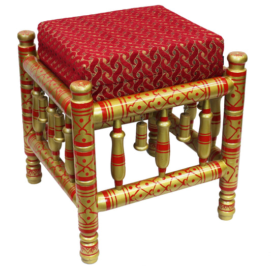 Natural Geo Decorative Red/Gold Rosewood Cushioned Accent Stool