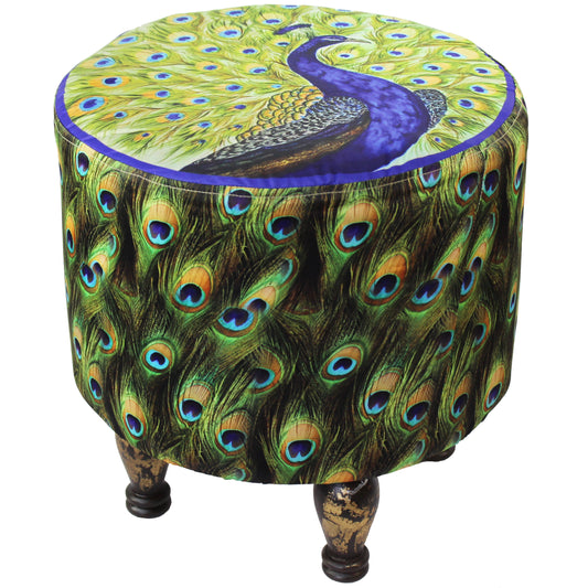 Natural Geo Blue/Green Peacock Decorative 17" Round Stool