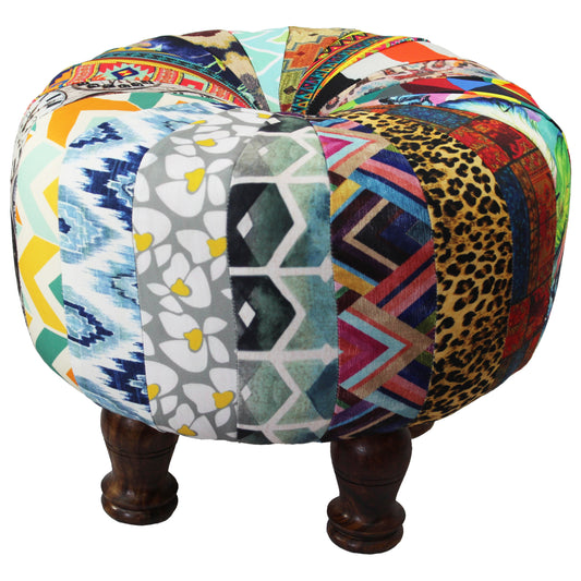 Natural Geo Multicolored Patchwork Decorative 15" Round Stool