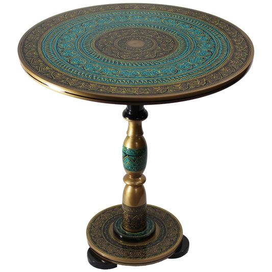 Natural Geo Rosewood Round Wooden 18" Accent Table - Turquoise
