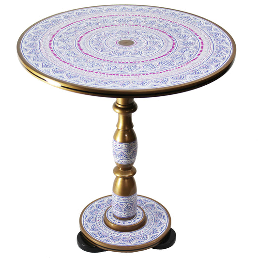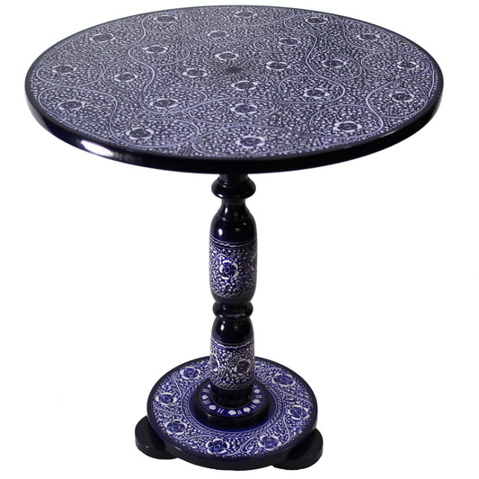 Natural Geo Rosewood Round Wooden 18" Accent Table - Navy Blue