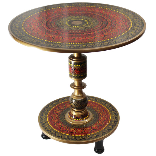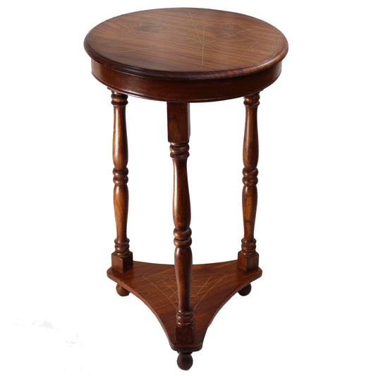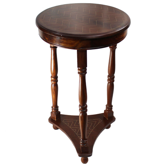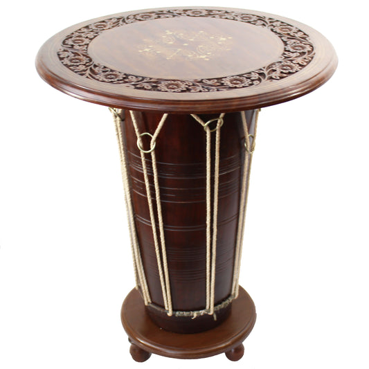 Natural Geo Handcarved Rosewood 23" Drum Table with Brass Inlay