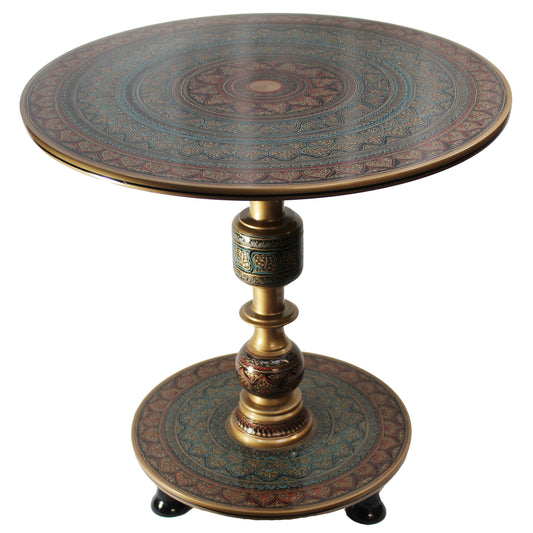 Natural Geo Rosewood Round Wooden Accent Table - Abstract Golden Brass Inlay