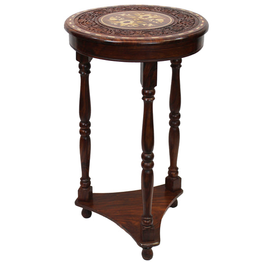 Natural Geo Decorative Rosewood Round Wooden Carved Floral Accent Table