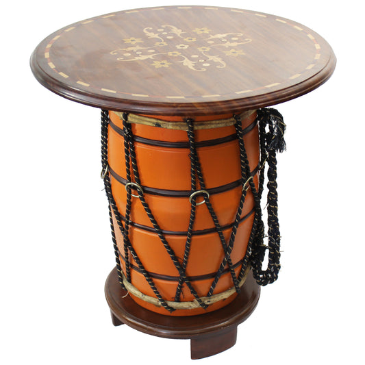 Natural Geo Orange Floral Rosewood 20" Drum Accent Table