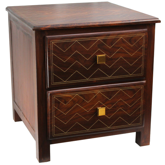 Natural Geo Rosewood Square Wooden End Table - Chevron Golden Brass Inlay