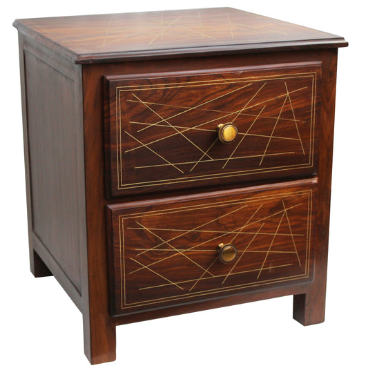 Natural Geo Rosewood Square Wooden End Table - Abstract Golden Brass Inlay