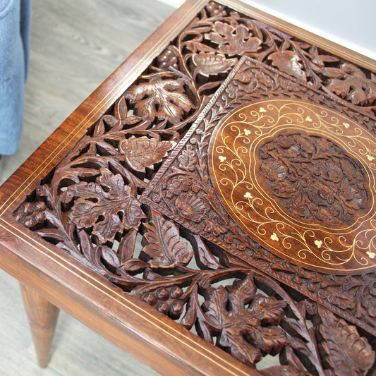 Natural Geo Handcarved Square Rosewood Decorative Accent Table