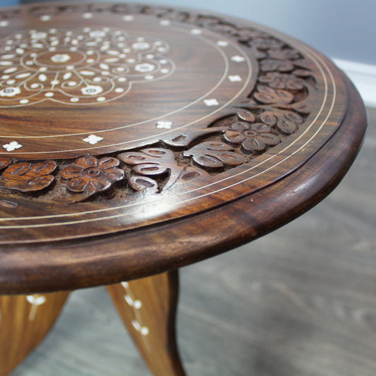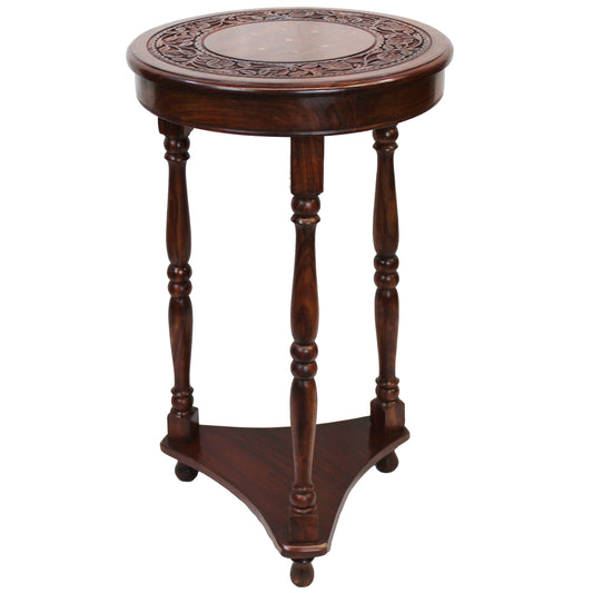 Natural Geo Handcarved Round Rosewood Decorative Accent Table