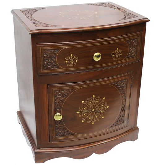 Natural Geo Decorative Rosewood Curved Wooden End Table with Drawer & Cabinet