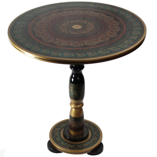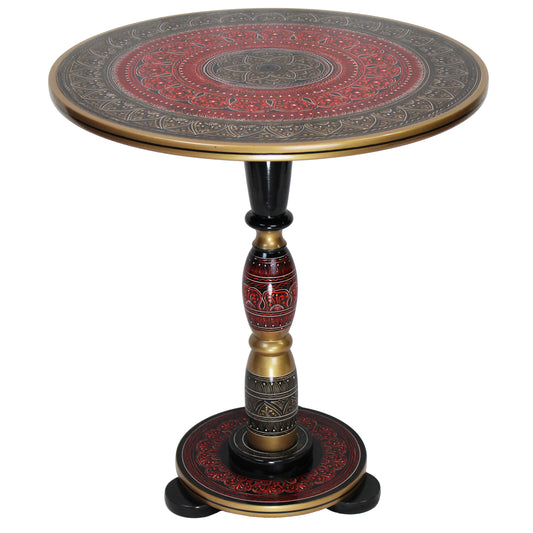 Natural Geo Decorative Rosewood Round Wooden Accent Table Red/Gold/Black