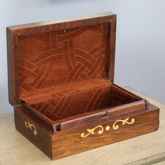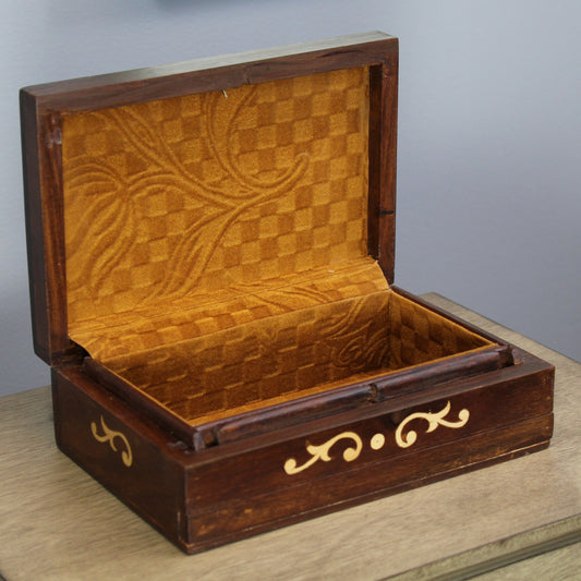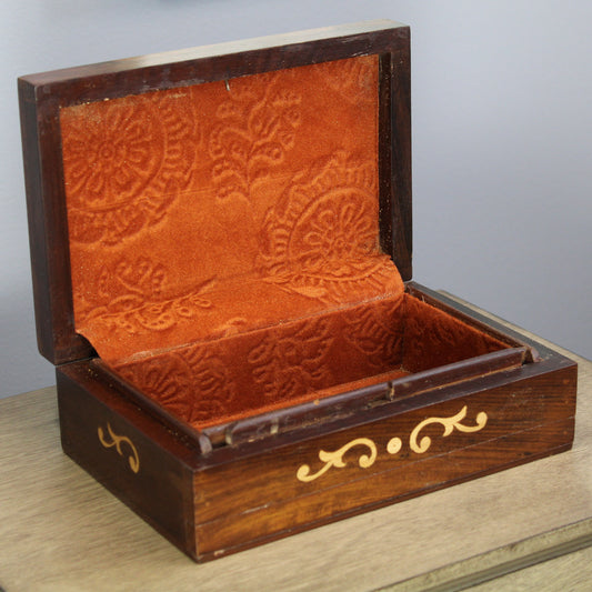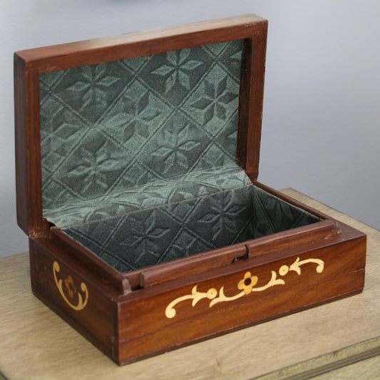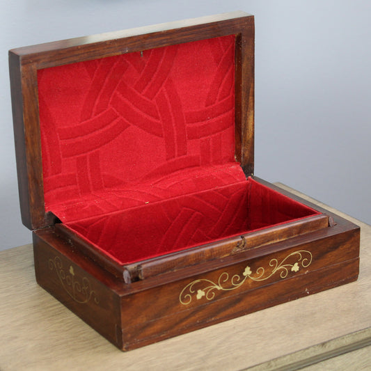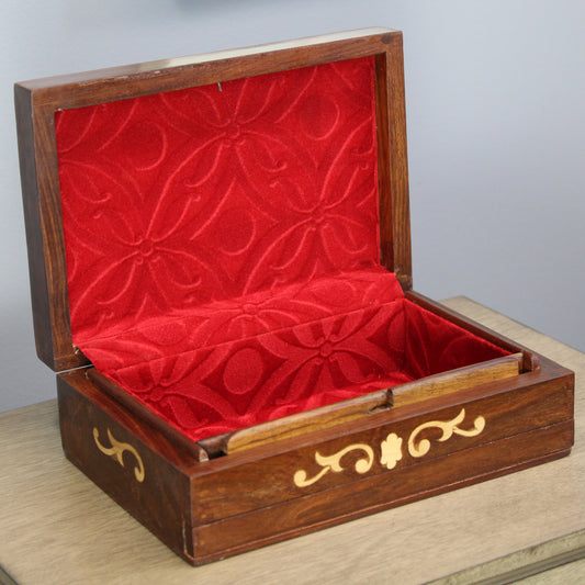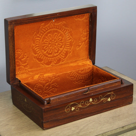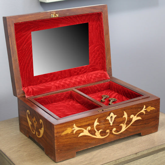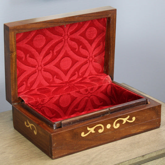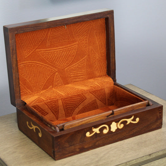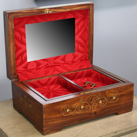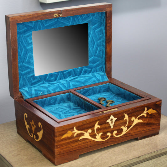 Natural Geo Handmade Rosewood Floral Wooden Decorative Box with Key