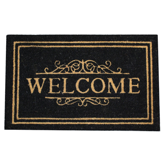Natural Geo Island Classic Welcome Black/Beige Natural Coir Door Mat 20 x 31"