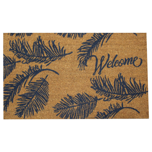 Natural Geo Island Ferns Welcome Beige/Blue Natural Coir Door Mat 18 x 30"
