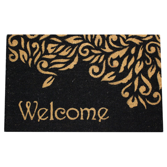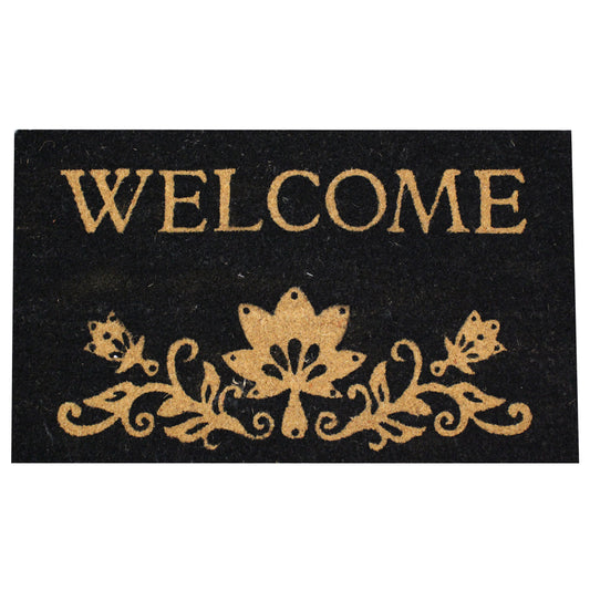 Natural Geo Island Floral Welcome Black/Beige Natural Coir Door Mat 18 x 30"