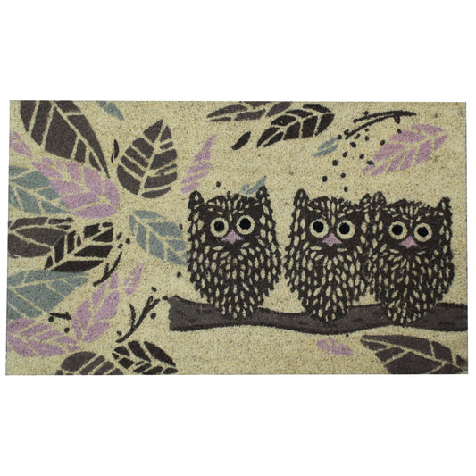 Natural Geo Island Staring Owls Yellow/Brown Natural Coir Door Mat 18 x 30"