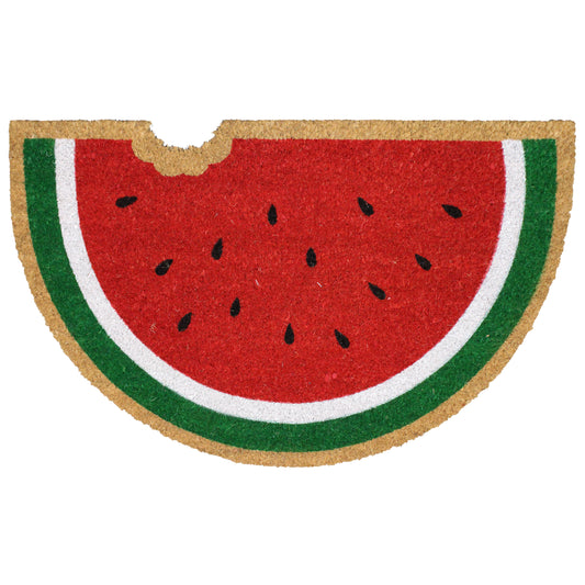 Natural Geo Island Bitten Watermelon Red/Green Natural Coir Door Mat 20 x 31"