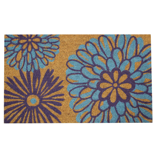 Natural Geo Island Abstract Floral Blue/Purple Natural Coir Door Mat 18 x 30"