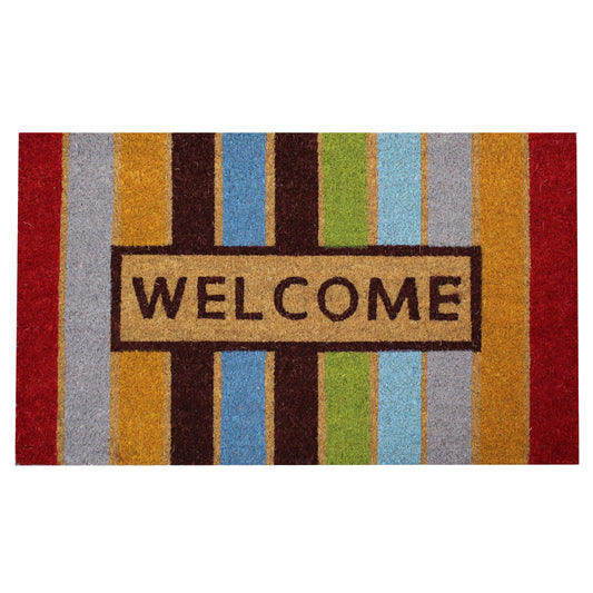 Natural Geo Island Striped Welcome Multicolored Natural Coir Door Mat 18 x 30"