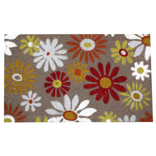 Natural Geo Island Sunflower Floral Multicolored Natural Coir Door Mat 18 x 30"