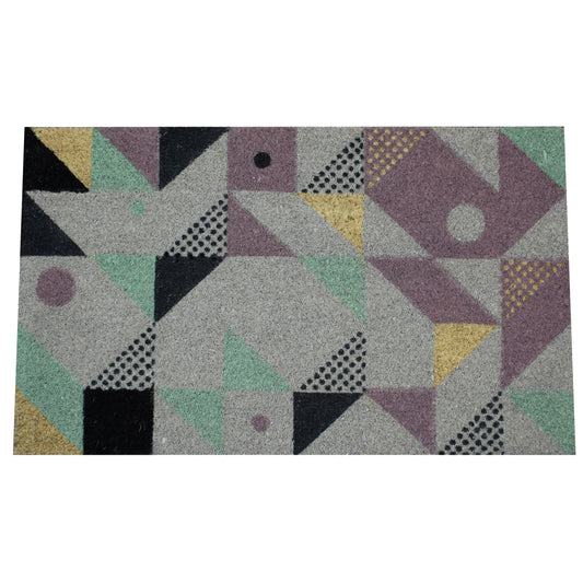 Natural Geo Island Geometric Shapes Multicolored Natural Coir Door Mat 18 x 30"