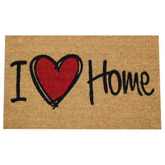 Natural Geo Island Heart Home Beige/Red Natural Coir Door Mat 18 x 30"