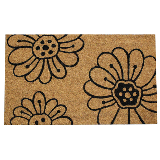 Natural Geo Island Floral Pollen Black/Beige Natural Coir Door Mat 18 x 30"