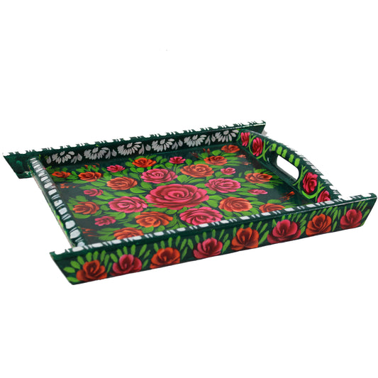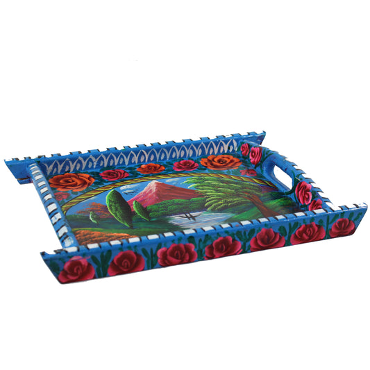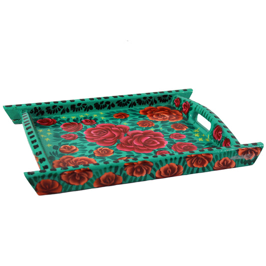 Natural Geo Turquoise Floral Rosewood Serving Tray