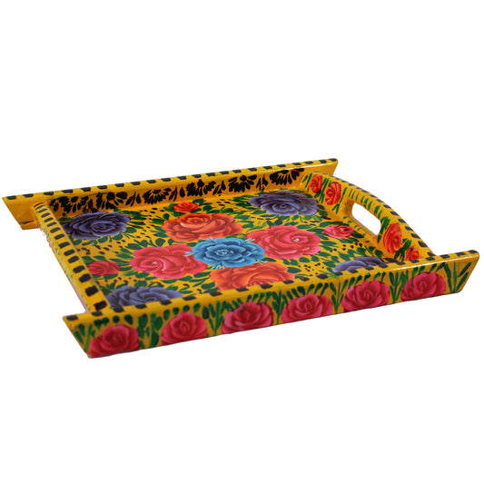 Natural Geo Yellow Floral Rosewood Serving Tray
